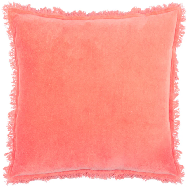 Lulah Block Printed Ruffle Cushion Linen/Red
