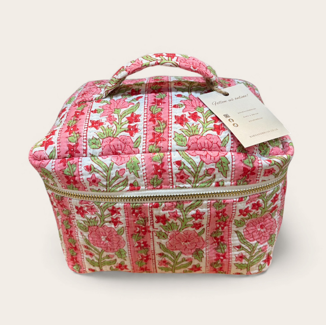 Pink & Green Floral Toiletry Bag - Small