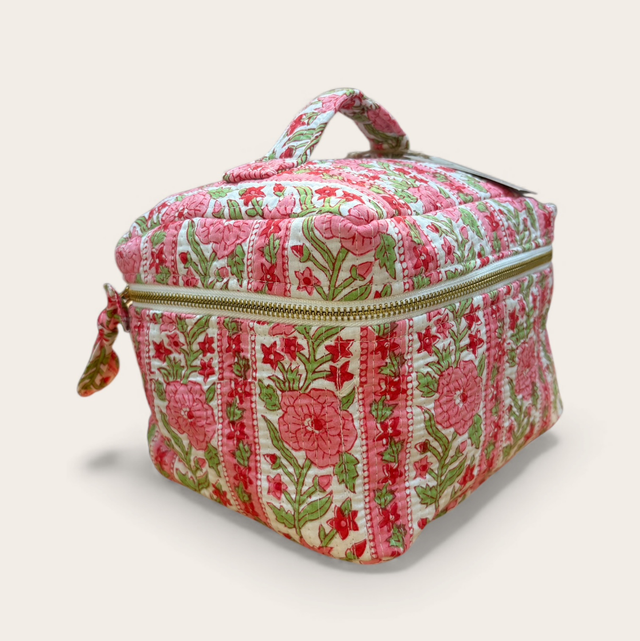 Striped Pink Floral Vanity Bag